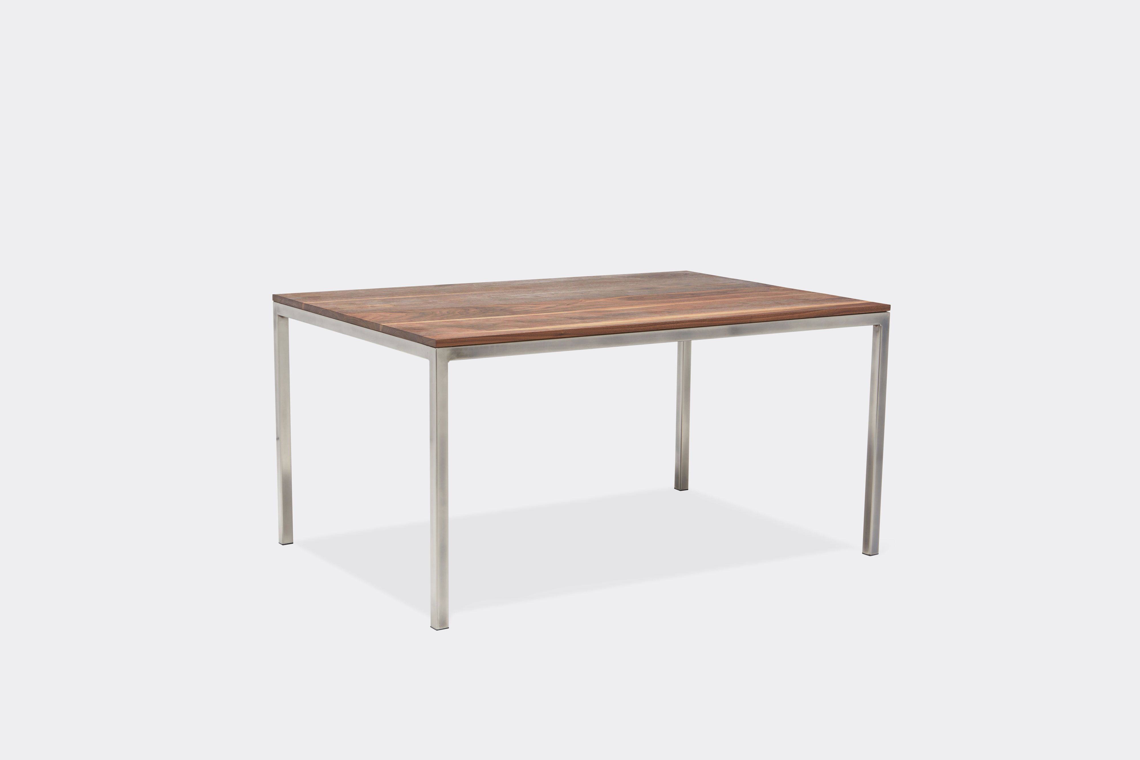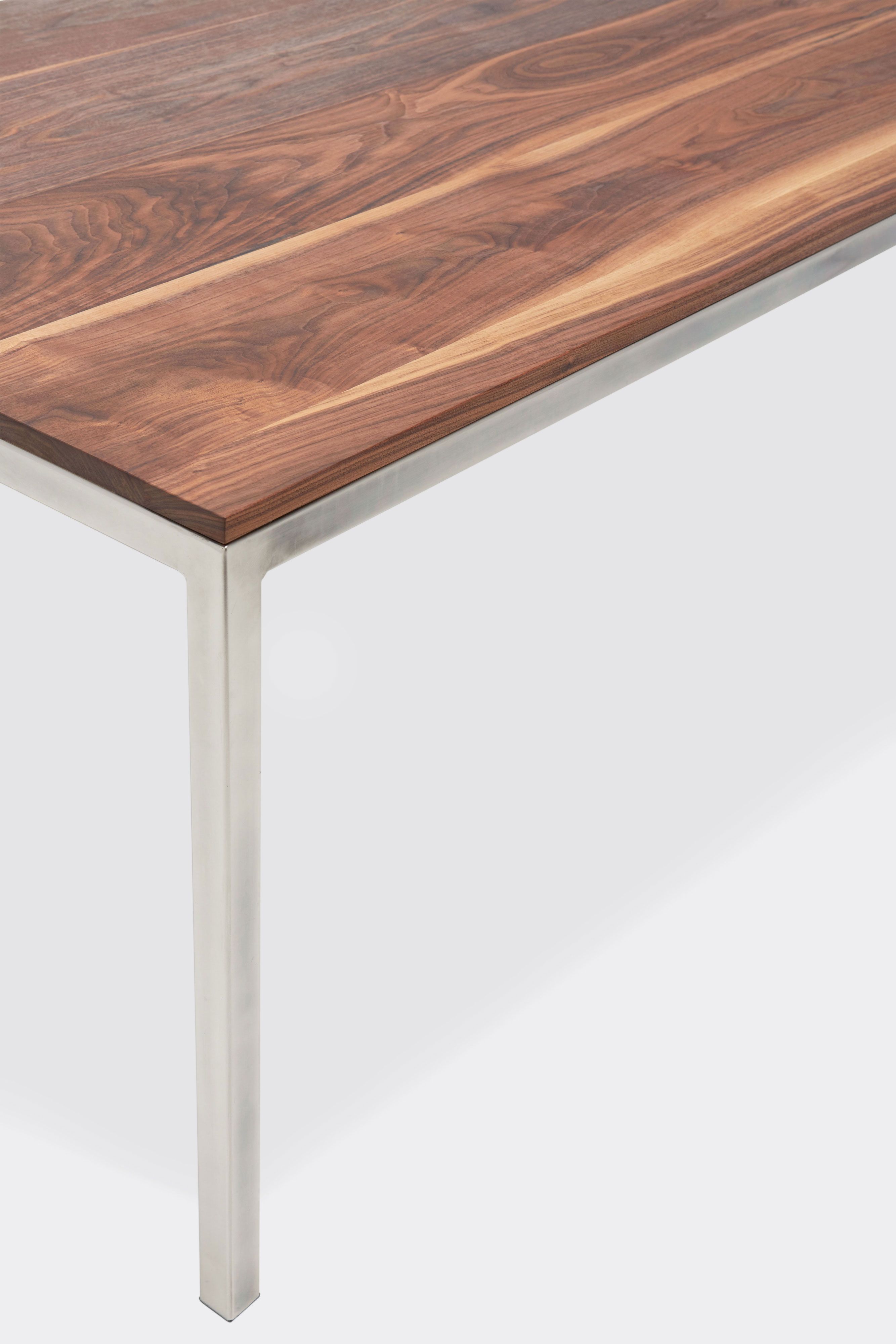 With its clean, architectural lines, this table showcases the natural beauty of its rich hardwood top and refined metal base. Made to order, each piece can be customized with your choice of wood and metal finishes, offering a perfect balance of craftsmanship and personal style.